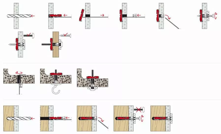- La cheville fischer DuoTec est appropriée pour les montages en attente.
