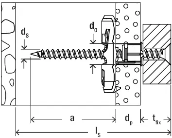 - Profondeur de perçage mini. h1 ls – tfix + 10 [mm]
