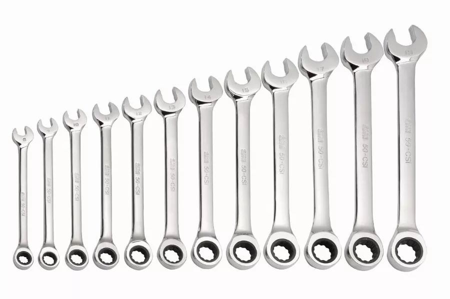 Jeu de 12 clés mixtes à cliquet finition polie brillante