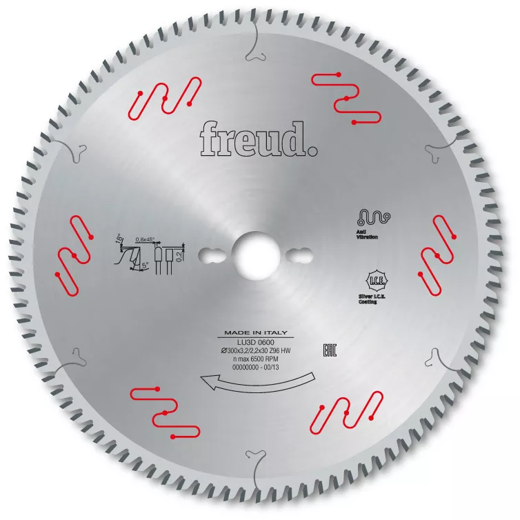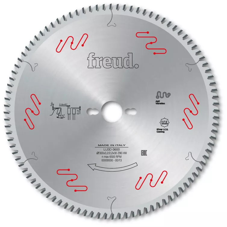 Lame Trapèze Plate Pour Panneaux Revêtus Deux Faces FREUD – Ø300 3,2/2,2 AL30 Z96 TP+ – F03FS05093 -LU3D 0600