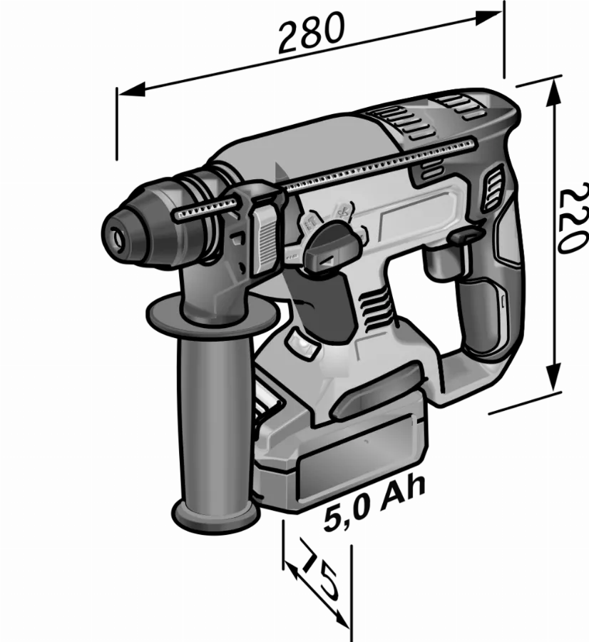 - Commutateur à quatre fonctions : percer, perforer, buriner et ajuster le burin
