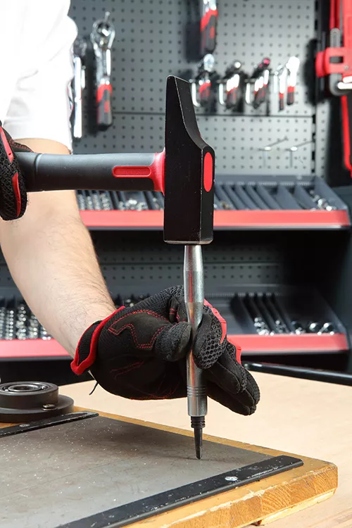 - Le porte-embouts permet d’accueillir des têtes de chasse-goupilles, chasse-clous et pointeaux