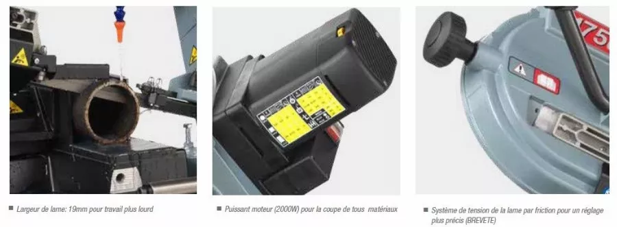 - Les avantages de cette scie à ruban Femi 1750XL sont :